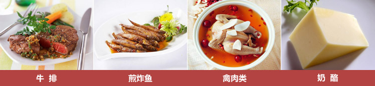 禽肉类、煎炸鱼类、牛排以及奶酪