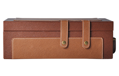 【款式】:两支装,双皮带扣翻盖式皮盒